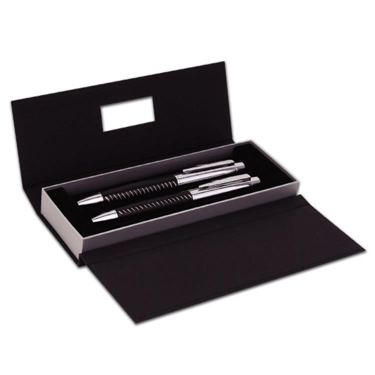 Em um mercado cada vez mais competitivo, a escolha certa do brinde promocional é fundamental para fazer sua empresa se destacar entre as demais. O luxuoso conjunto de caneta e lapiseira em metal personalizado é um produto diferenciado que vai levar praticidade e estilo para a rotina de seus clientes e colaboradores. Disponível em prata com apoio para escrita em cores variadas, acompanha atraente estojo de papelão rígido. Personalize com sua marca gravada a laser e compre a partir de 10 unidades.
