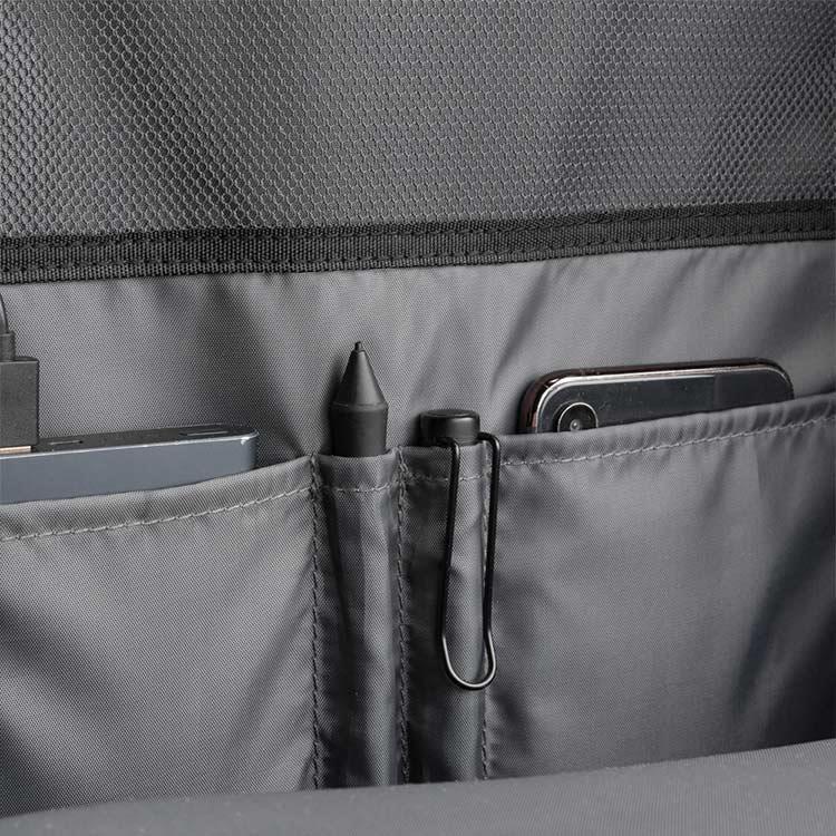 Mochila premium personalizada, confeccionada em poliéster acolchoado de alta durabilidade, com alças de ombro acolchoadas para maior conforto. O interior conta com divisórias com zíper para acomodar pequenos objetos e um compartimento principal que suporta notebooks de até 15,6. Possui bolso frontal com zíper e uma divisória traseira que permite encaixar no engate da mala de viagem. Além disso, conta com porta USB lateral para carregamento de dispositivos móveis, oferecendo praticidade para viagens e uso diário. Mínimo 1 peça.