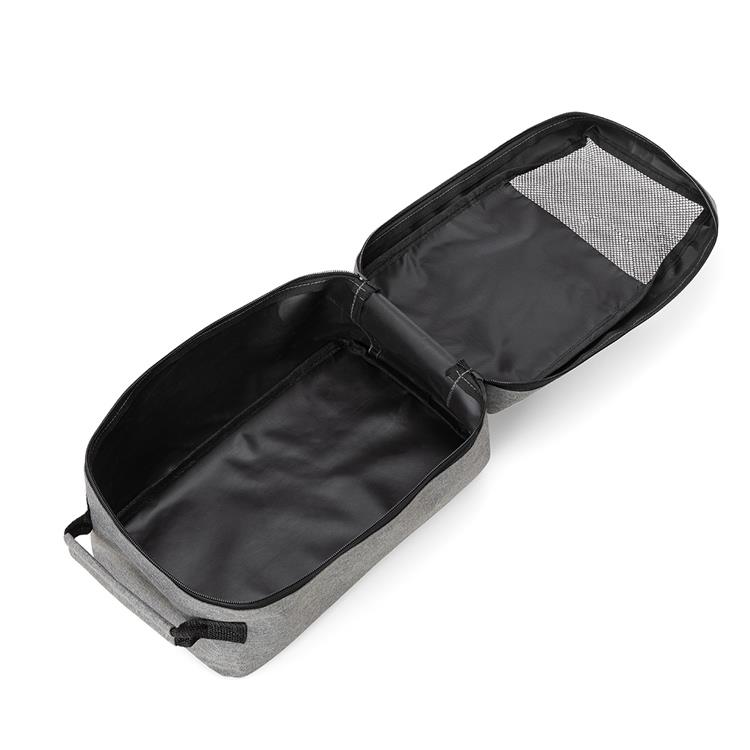 Procura um brinde promocional que facilita o dia a dia de suas clientes e colaboradoras? Ideal para transportar tênis ou até outros itens para prática de esportes ou viagem a nécessaire personalizada é uma excelente escolha de brinde corporativo. Com ótimo espaço interno, o produto garante ampla visibilidade para sua marca. Com alça para carregar e fechamento com zíper, possui bolso frontal. A nécessaire está disponível em azul, cinza escuro e cinza. Personaliza com sua marca em serigrafia e compre a partir de 10 unidades. Ref. PT1050