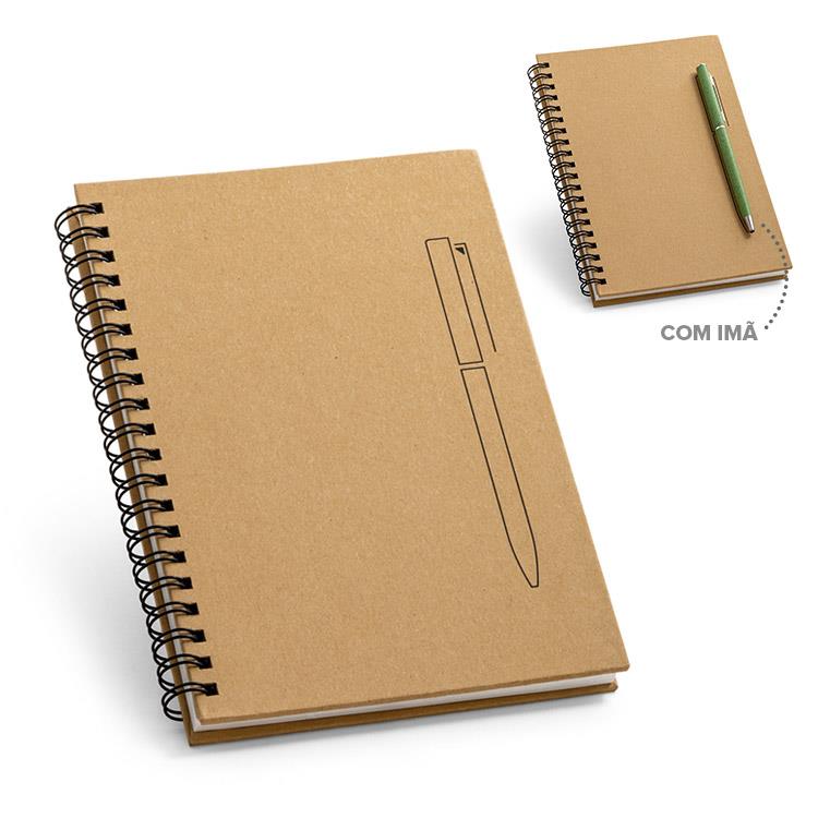 Detalhes: Formato B6 capa dura. 70 folhas não pautadas papel pedra de 120 g/m². Imã na capa que funciona como um suporte de esferográfica.